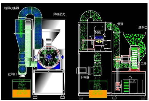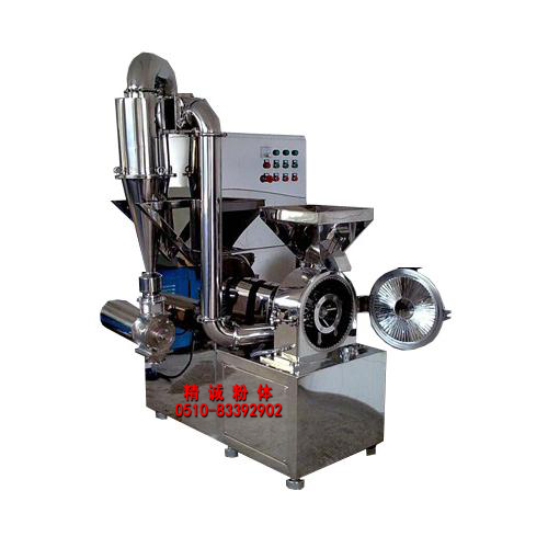 主要用途: 該機組適用于制藥、食品、化工等行業(yè),具有風冷、無篩網等多種性能,它不受物料粘度、軟硬度及纖維等限制,對不同物料能起到較好的粉碎效果。適用于粉碎帶纖維的中藥材、帶一定油性的物料。 工作原理: 該機由加料斗,分級輪,粉碎刀片,齒圈,粉碎電機,出料口,風葉,集料箱,吸塵箱等部分組成,物料由加料斗進入粉碎室,通過高速旋轉的刀片進行粉碎,調節(jié)分級輪與分級盤的距離來達到所要求的物料細度,高速旋轉的風葉把達到要求的物料從粉碎室引到集料箱布袋中,沒有達到要求的物料繼續(xù)在粉碎室中粉碎,集料箱布袋產生的粉塵由吸塵箱收集,該機組結構簡單,操作清理方便,噪音小,產量高,機器采用不銹鋼材料制作,粉碎過程中無粉塵飛揚。 主要特點: ZFJ系列中草藥粉碎機新穎大方、不銹鋼制作、結構緊湊、生產效率高、降低生產成本且提高生產效力,基本無易損件,操作簡便。該機組設計原理合理,能粉碎不同纖維性較強的物料,適合五谷雜糧溫控合理,過濾回收率在99.8%以上。 |