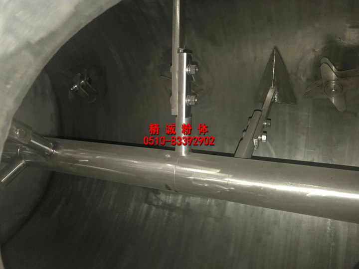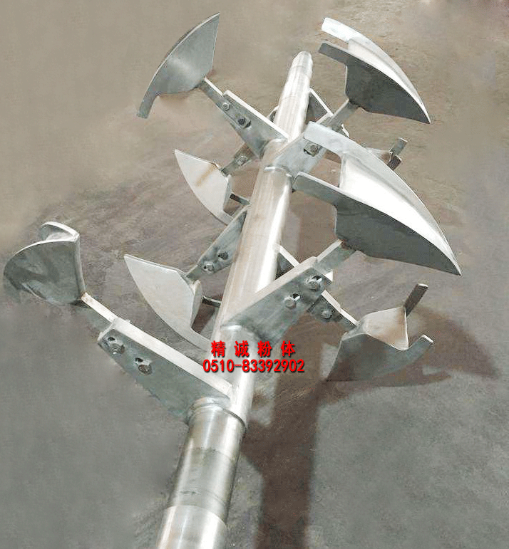 3、犁刀組軸:犁刀根據容積大小安排犁刀數據,安裝在主軸上,在筒體內作圓周湍動流混合物料。