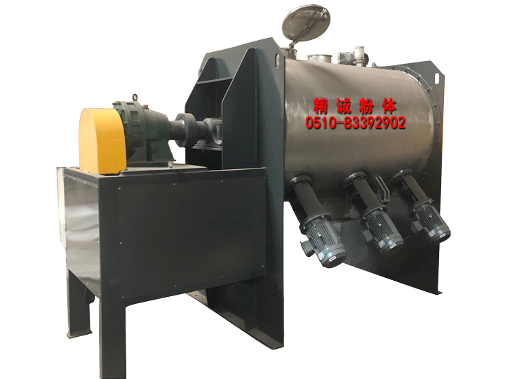 該機型由傳動機構、臥式筒體、犁刀、飛刀四部分組成。物料在犁刀作用下沿筒壁作對流運動,當物料流經飛刀時被高速旋轉的飛刀拋灑,從而在較短時間內達到均勻混合。能適應大多固液混合以及造濕粒、干燥等復合工藝。應用于化工原料、制藥原料、建筑材料、膠粘原料、食品原料、粉末冶金、礦山材料、石油原料等行業的固-固、固-液、粘稠狀物料。